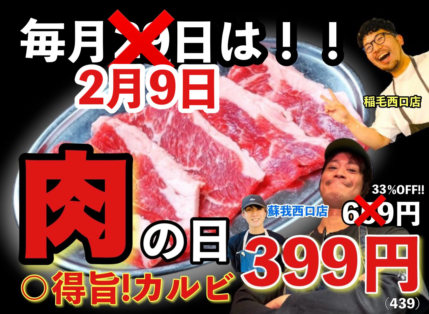 〇得旨!カルビ 399円(税込439円)!