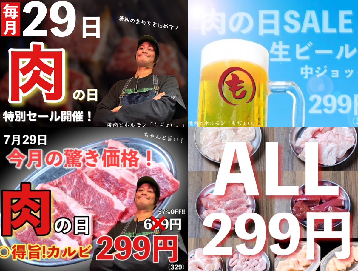 ついに今月から毎月29日は「肉の日」を開催いたします!
