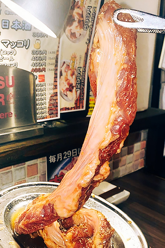 豚ハラミを丸々一本豪快に焼くことで肉汁を逃さない!